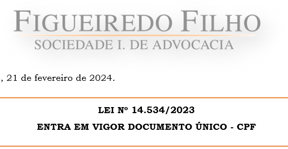 LEI Nº 14.534/2023 – Entra em vigor documento único – CPF
