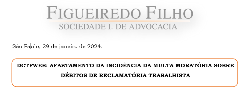 “Editamos o Parecer/Circular anexo sobre “DCTFWEB: Afastamento da incidência da multa moratória sobre débitos de reclamatória trabalhista”