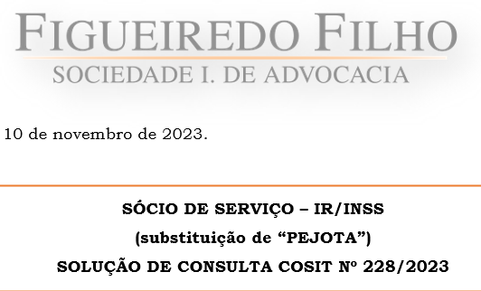 Sócio de serviço – IR/INSS (substituição de “PEJOTA”) Solução de consulta COSIT Nº 228/2023