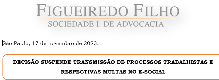 Editamos o Parecer/Circular anexo sobre “Decisão suspende transmissão de processos trabalhistas e respectivas multas no E-social”.