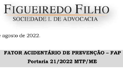 Fator acidentário de prevenção – FAP – Portaria 21/2022 MTP/ME