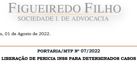 Portaria/MTP nº 07/2022 – Liberação de pericia INSS para determinados casos
