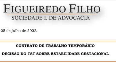 Editamos o Parecer/Circular anexo sobre “Contrato De Trabalho Temporário – Decisão Do TST Sobre Estabilidade Gestacional”.