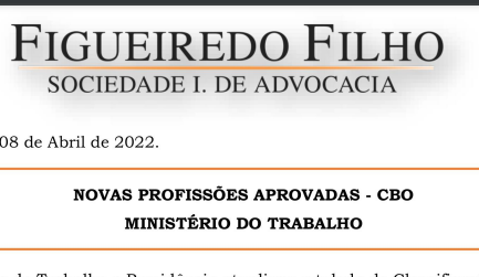 Editamos o Parecer/Circular anexo sobre “Novas profissões aprovadas – CBO Ministério do trabalho”.