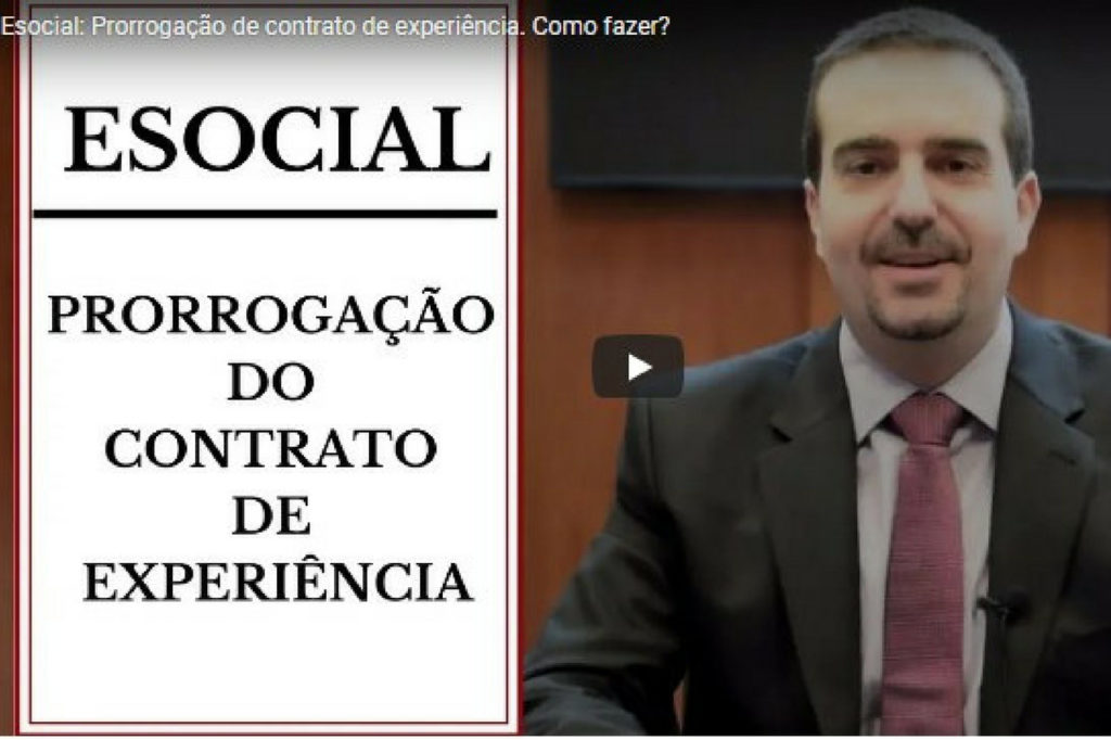 2018.07.24 VIDEO – Esocial : Prorrogação de contrato de experiência. Como fazer?