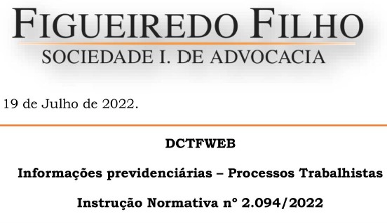 DCTFWEB Informações Previdenciárias – Processos Trabalhistas Instrução Normativa nº 2.094/2022