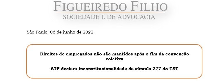 STF declara inconstitucionalidade da súmula 277 do TST”.