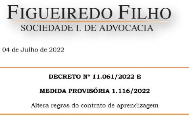 Decreto Nº 11.061/2022 e Medida Provisória 1.116/2022 – Altera regras do contrato de aprendizagem